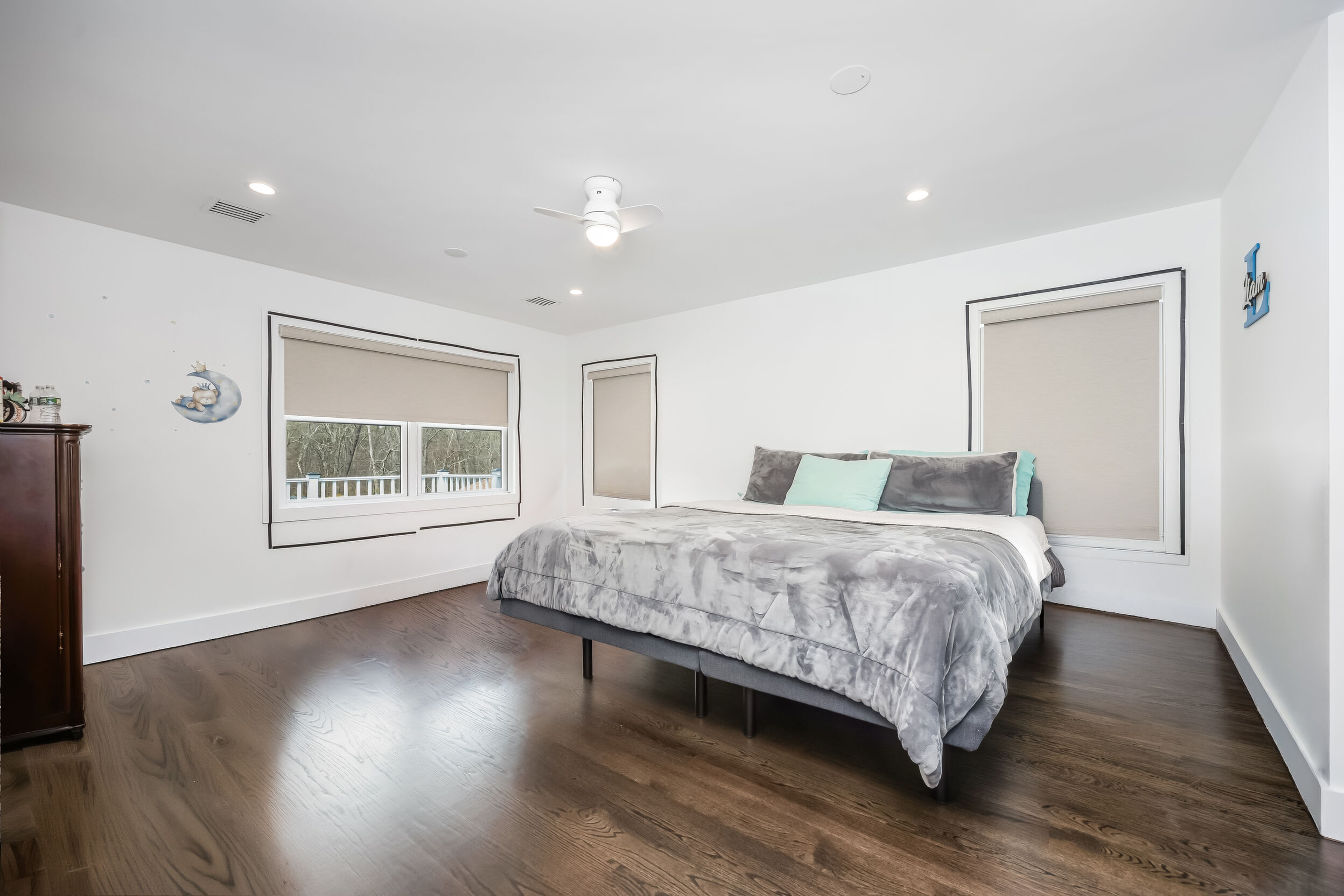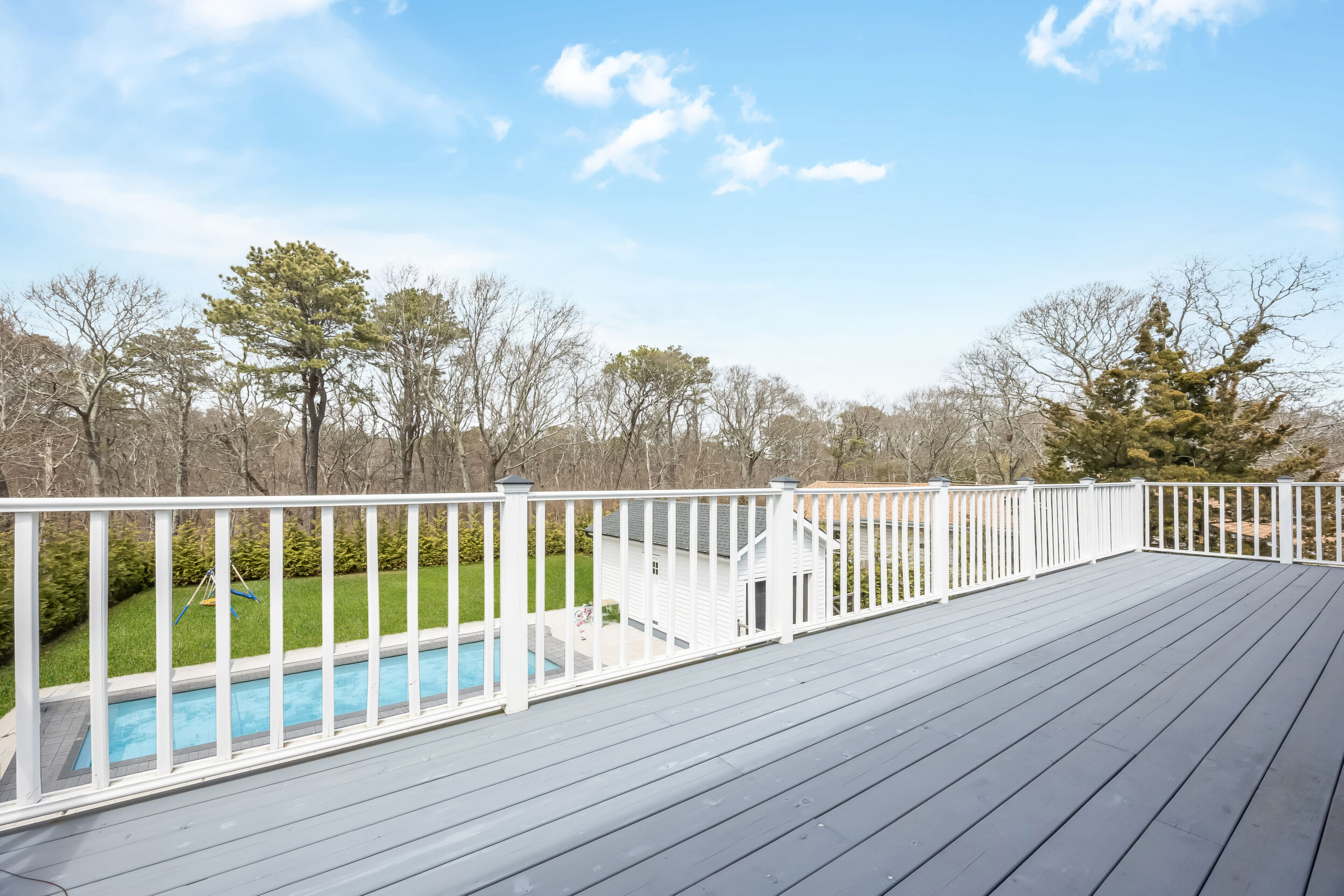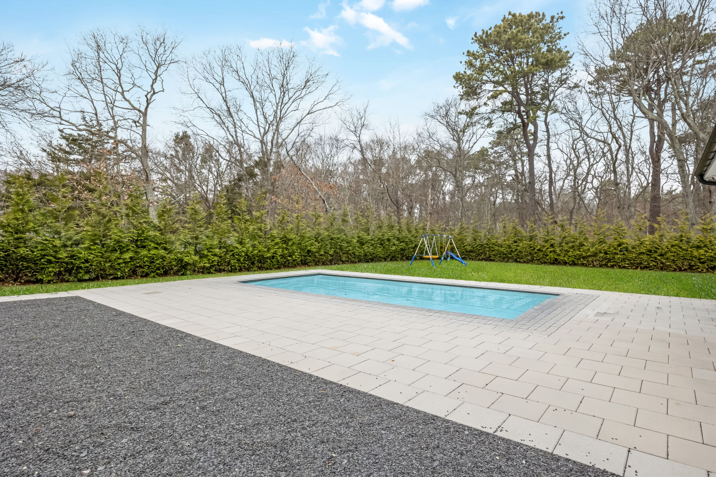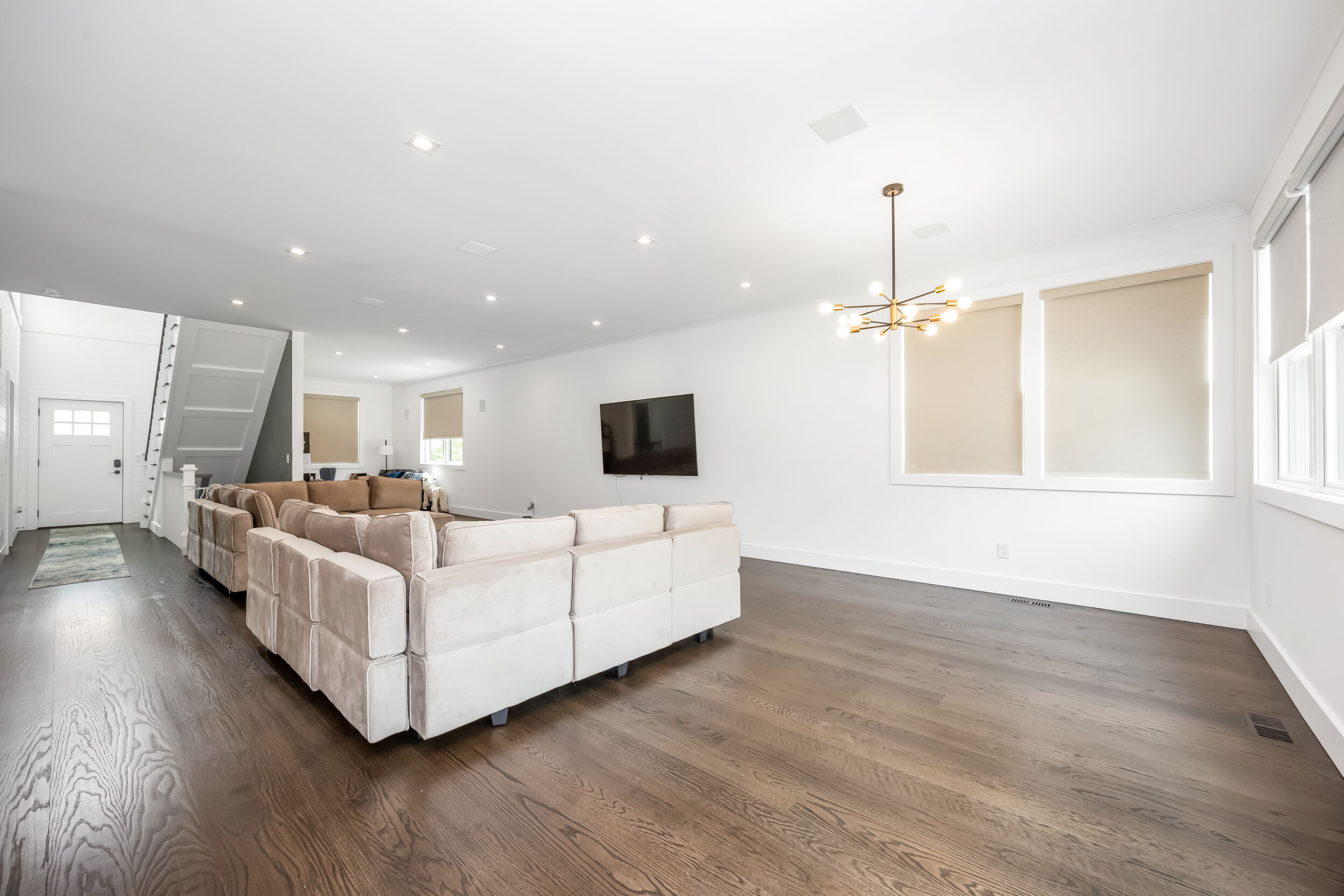 Welcome!! to This stunning Custom-build Contemporary style home, completed in 2023, Located on a beautifully landscaped property with more than 200 hand-planted privacy trees, that currently measure 20 feet in height, this architecturally designed home features 5 spacious bedrooms, 4,5 baths, a spacious open-concept layout connects the gourmet kitchen to the living areas, solid wood abundant kitchen cabinet with cambria Quartz countertops and backsplash, premium stainless-steel appliances, with 6" wide-plank white-stained oak hardwood floors, 3/5" R-15 Interior and exterior sound proof foam., 10" fiberglass insulation , baseman walls with cement 4,500 PCI insulation. A full-width balcony on the second floor, offering a view of the pool. Andersen 400 Series windows and doors, and Venetian plaster walls accenting the stairway to the finished basement-complete with 12-foot-wide entry, and 10 food Hight, wet bar, Ample space for recreation, or playroom, The master suite has its own bathroom, with marble floors with radiant heating. exterior, surrounded by premium pavers 18' x 32' in-ground vinyl pool, framed. A detached garage adds functionality, dual 200 AMP electric panels, HVAC Heating and cooling, (natural gas hot air furnace and air conditioning system) instant hot Watter tank. Hydro septic system, sprinkles back and front, locates 20 minutes from Southampton's. Don't miss this opportunity.