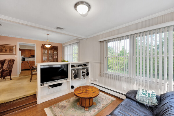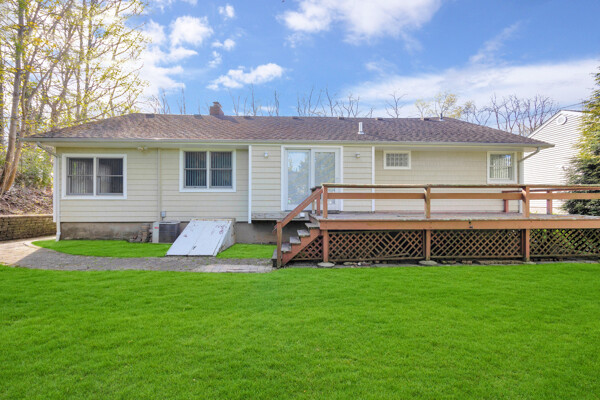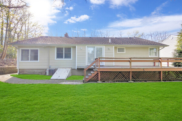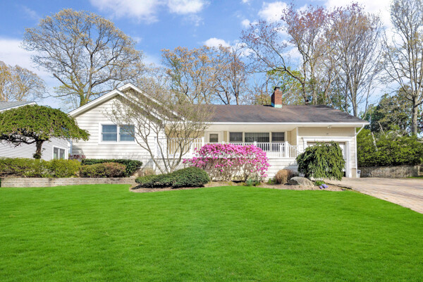Beautiful, wideline custom built Ranch situated on quiet block, Lenox Hills, Inc. Village, adjacent to Bethpage State Park & Golf Course, across the street is state wooded land, great curb appeal, newer double brick paver driveway, Front Porch, LR w/brick fireplace, FDR, sunken Den w/crown moldings, EIK w/knotty pine cabinets, sliding doors to deck. *Was 3 BRS originally, 2 BRS converted to large MBR Suite w/walk-in closet w/built-ins, hardwood floors & MBR Full Bath w/pedestal sink, 2nd BR w/hardwood floors, oversized Full Bath w/walk-in shower, large, full Basement, 1 car garage, all Andersen windows, custom verticals, interior raised panel doors, oil heat, heating system only 6 years old, 275 gallon oil tank only 6 years old, 200 amp electric, central air, close to town, shopping & railroad.