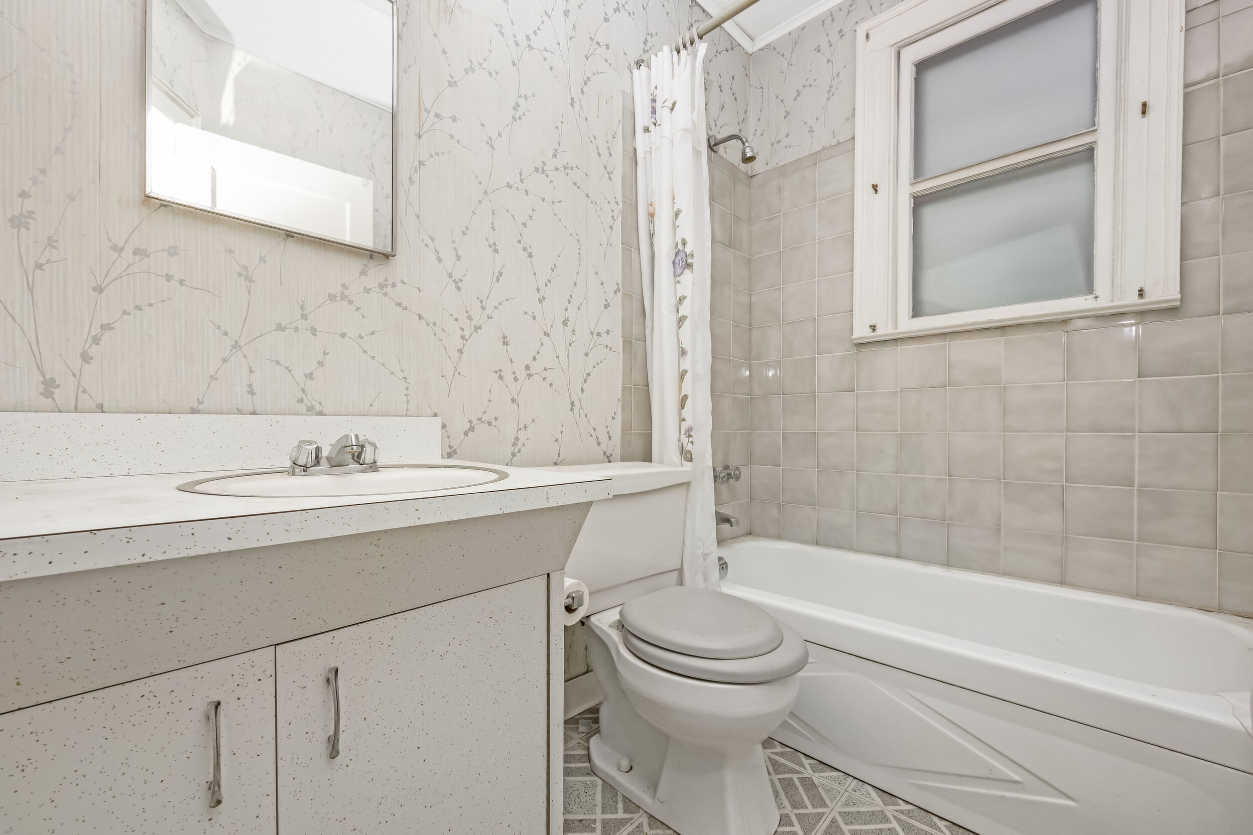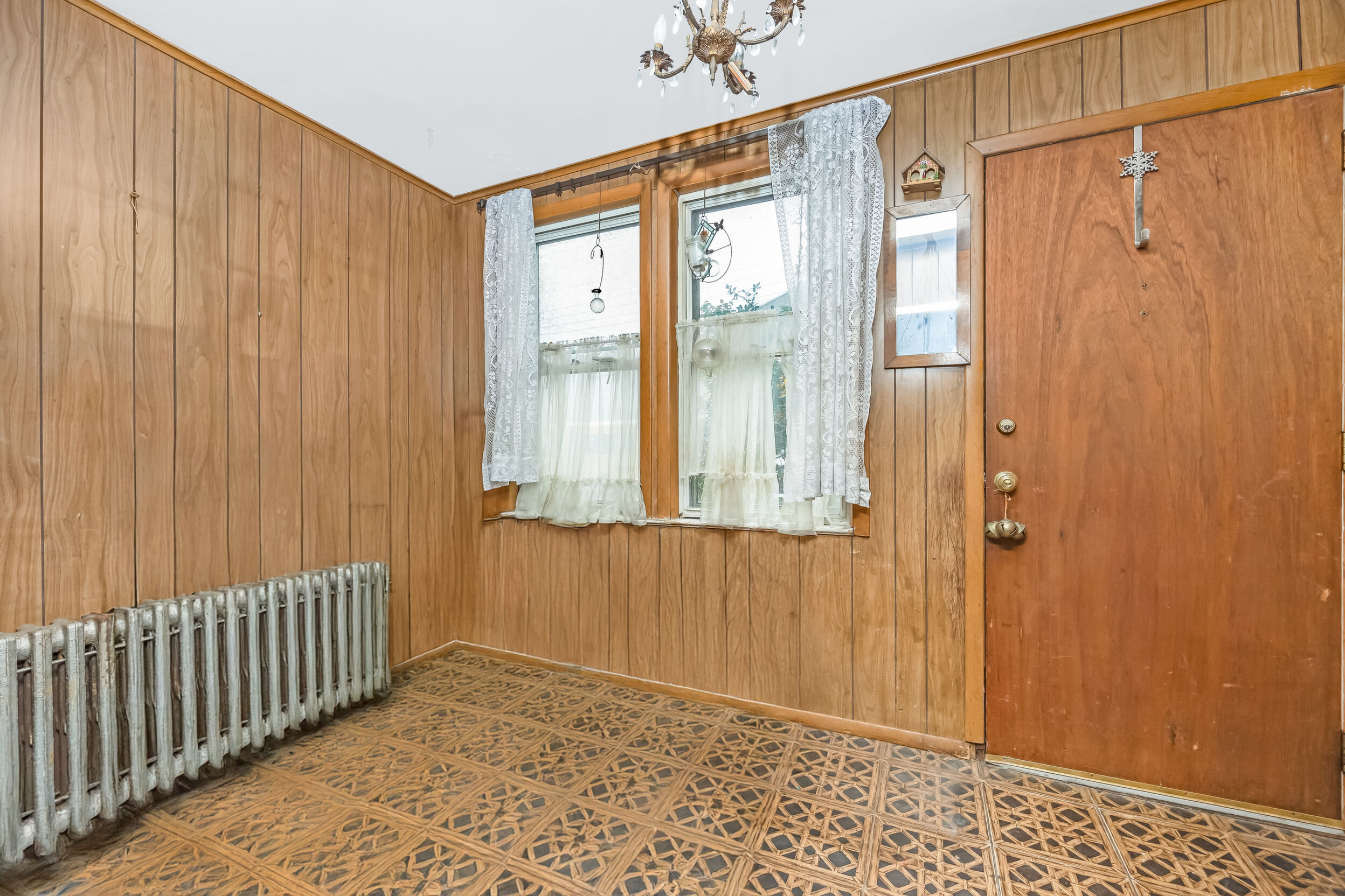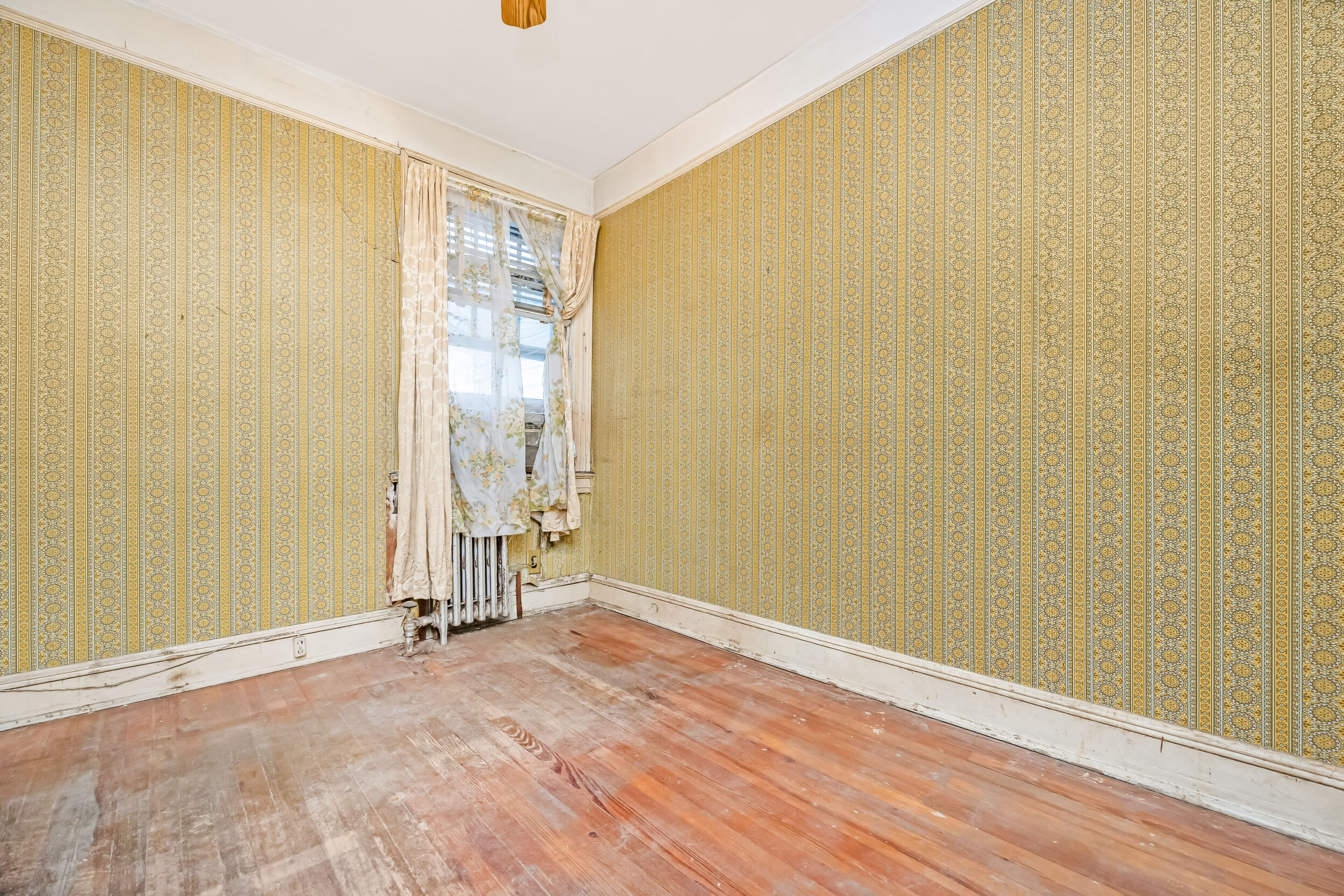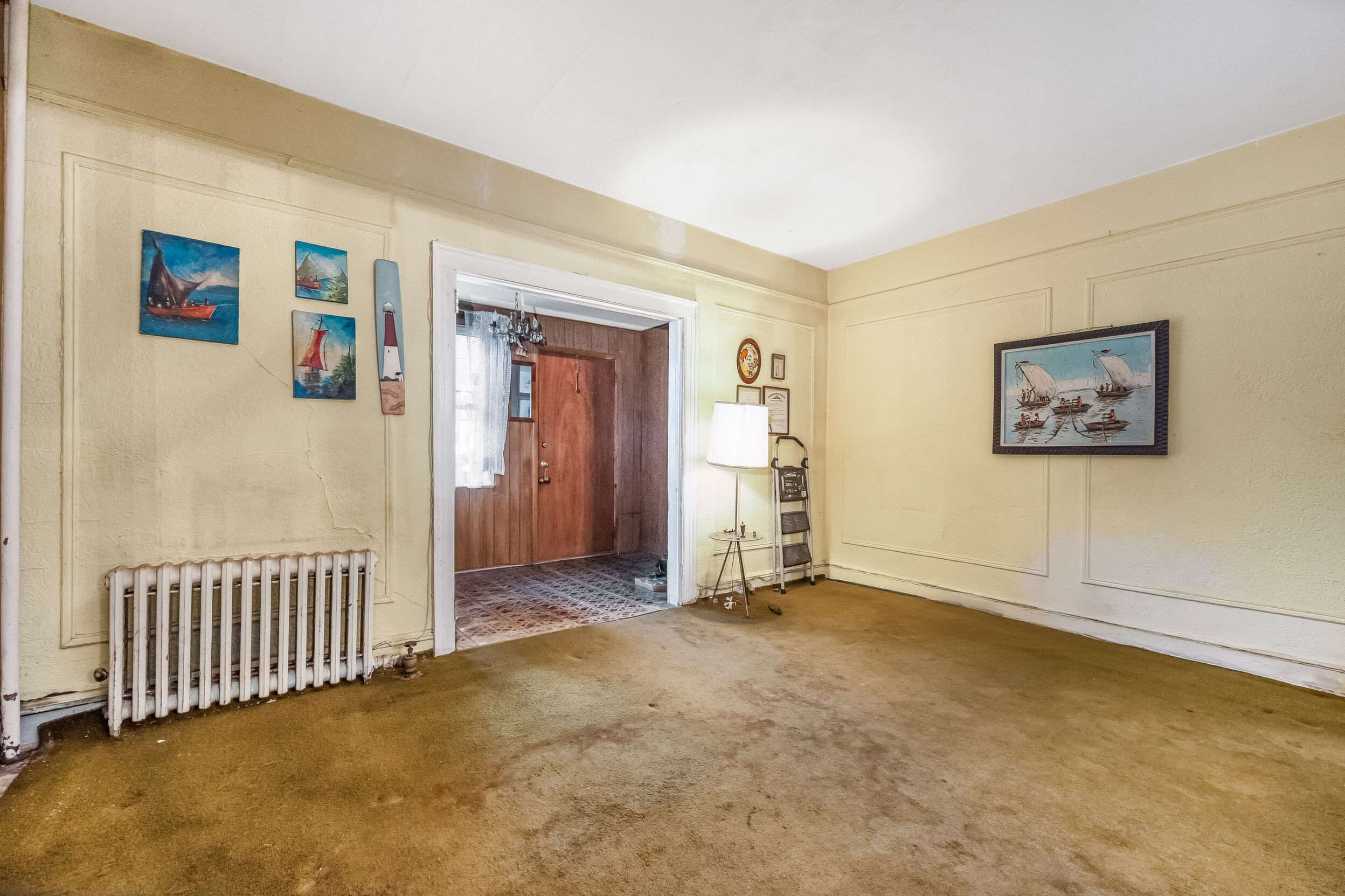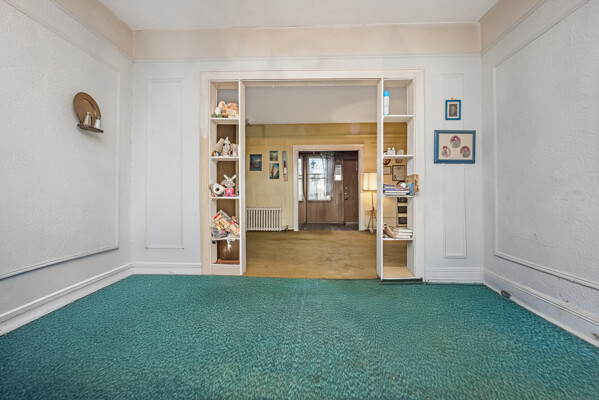 Great opportunity to buy an amazing location and amazing layout. And fix it your way. Very quiet block. Yet convenient to shops and 3 buses; including express bus to the City. Duplicate pictures of inside means As-is and then digitally cleaned up to clear clutter.